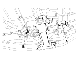 Loosen the bolt and then remove the stabilizer (A) from the sub frame.