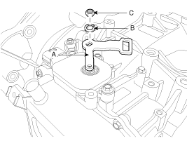 Remove the manual control lever (A) and the washer (B) after removing a nut (C).