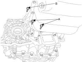 Remove the back up lamp switch(A) and Vehicle speed sensor(B).