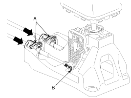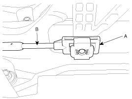 Remove the snap pin (B) and the clip (A) from the select cable assembly.