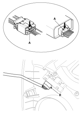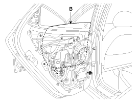After loosening the mounting screw, then remove the door inside handle housing (B).