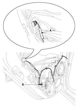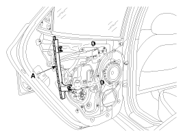 Carefully adjust the glass (A) until you can see the bolt, then loosen them. Separate the glass from the glass run and carefully pull the glass out through the window slot.