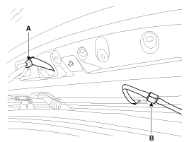 After loosening the mounting nuts, then remove the tailgate garnish (A).