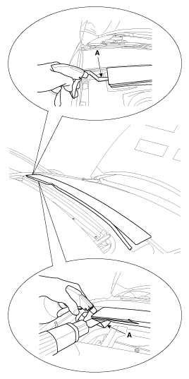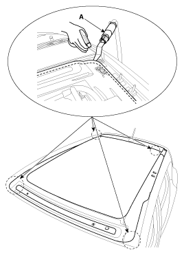 Open the space between chassis and front rixed glass using flathead screwdriver, and then cut the sealant of rear and side using a tool (09816-2P130) (A).