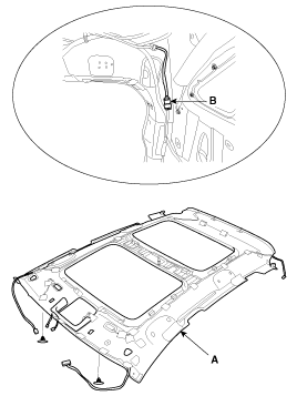 After loosening the mounting screws, then remove the sunvisor (A) and retainer (B).