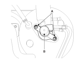 Remove the master cylinder (B) from the brake booster after loosening the mounting nuts (A).