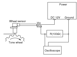 In order to protect the wheel speed sensor, when measuring output voltage, a 100 Ω resister must be used as shown.