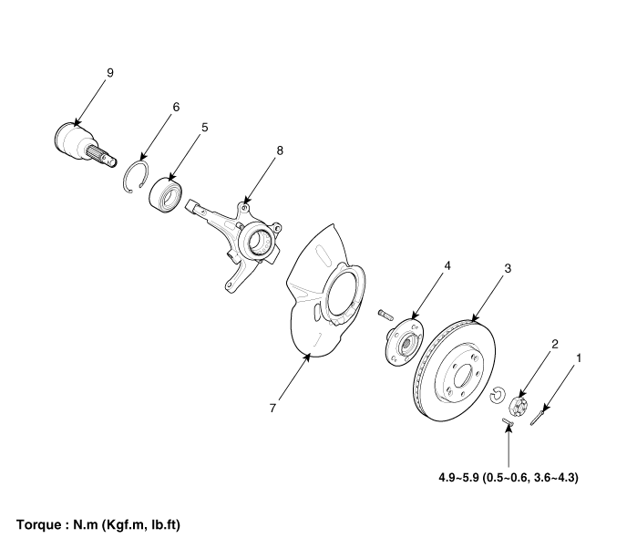 TUCSON(LM) >2010 > G 2.0 DOHC > Driveshaft and axle > Front Axle Assembly > Front Hub / Knuckle / Tone Wheel>Components and Components Location