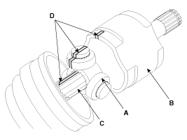 Install the spider assembly (A) and the circlip (E) to the spline (C) on the driveshaft.
