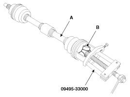 Remove the spider assembly (B) from the driveshaft (A) using the special tool (09495-33000).