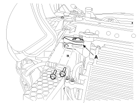 Remove the radiator mounting bracket (A) and then pull the radiator upper from vehicle.