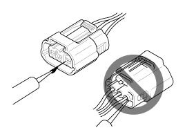 When a tester is used to check for continuity, or to measure voltage, always insert tester probe from wire harness side.