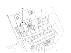 Disconnect the battery (-) cable, and then install the fuel pump relay (A).