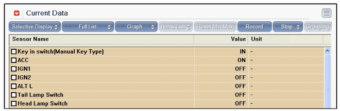 To consult the present input/out value of SJB, "Current DATA". It provides information of SJB input/output conditions.