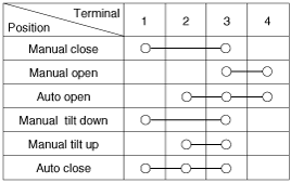 Check for continuity between the terminals. If the continuity is not as specified, replace the sunroof switch.