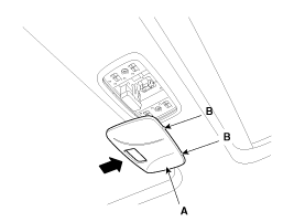 Remove the room lamp assembly (A) after disconnecting the connector (B).