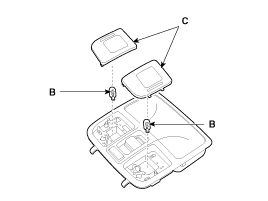 When replacing the bulb only, release the lens (C) cover from the roof without removing the overhead console lamp assembly.