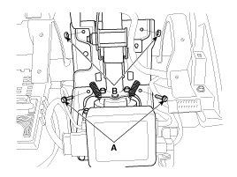 Remove the steering column by loosening the mounting bolts(A) and nuts(B).