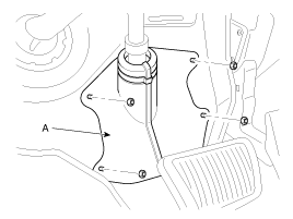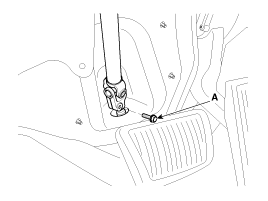 Loosen the bolt (A) and then disconnect the universal joint assembly from the pinion of the steering gear box.