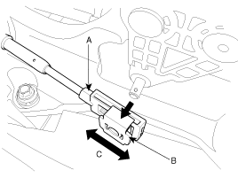 Adjust the slide clip (B) to fit it into the select lever pin (A) and install the snap pin (C).