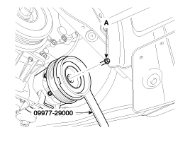 Remove the center bolt (A) while holding the disc & hub assembly with SST( 09977-29000).