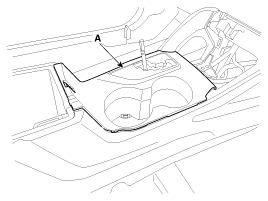 After loosening the mounting bolts and screws, then remove the floor console assembly (A).