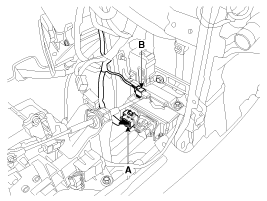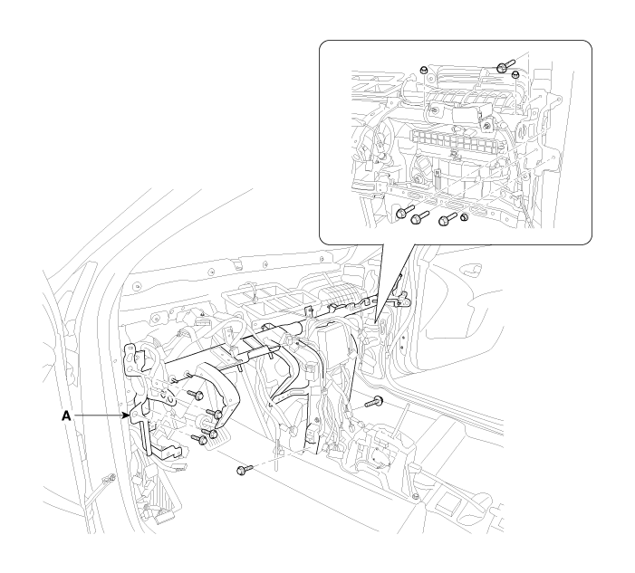 After loosening the crash pad lower panel mounting screws, then remove the crash pad lower panel (A).