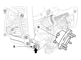 Remove the trailing arm (B) from the rear axle