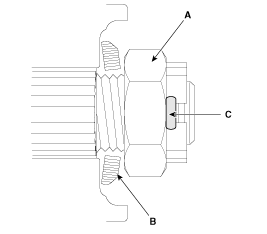 The washer (B) should be assembled with convex surface outward when installing the castle nut (A) and split pin (C) Also, don't reuse split pin (C) when reassembling.