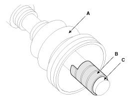 If the boot (A) is to be reused, wrap tape(B) around the driveshaft splines(C) to protect the boot (A).