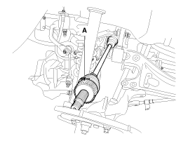 Push the rear axle carrier outward and separate the driveshaft (A) from the axle hub.