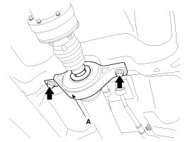 Check the center bearing(B) for excessive play or rattle and rubber for rent. If the center bearing(B) has excessive play or rattle and rubber has rent, replace the propeller shaft assembly.