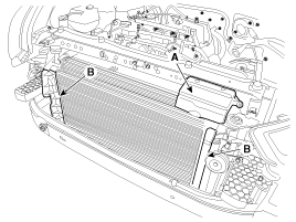 Remove the radiator mounting bracket (A) and then pull the radiator upper from vehicle.