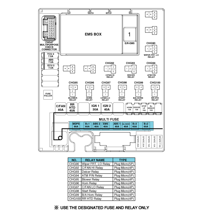 TUCSON(LM) >2011 > G 2.0 DOHC > Body Electrical System > Fuses And Relays > Relay Box (Engine Compartment)>Components and Components Location