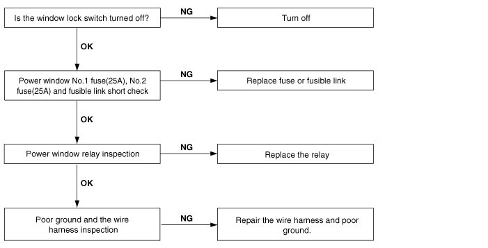 TUCSON(LM) >2011 > G 2.0 DOHC > Body Electrical System > Power Windows>Troubleshooting