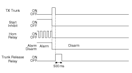 The horn relay is ON one time for 27sec(±2sec) and OFF two times for 10sec(±1sec).