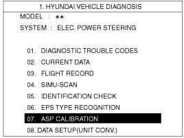Caution when ASP (Absolute Steering Position) calibration or EPS type recognition