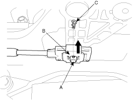Adjust the slide clip (B) to fit it into the select lever pin (A) and install the snap pin (C).