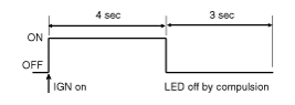 After ignition on, telltale lamp will turn on for 4 seconds and turn off for 3 seconds during the initialization phase and be turned NO afterward until receipt of valid enabled message from PODS system.