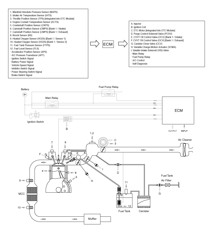 TUCSON(LM) >2012 > G 2.0 DOHC > Emission Control System > General Information>Schematic Diagrams