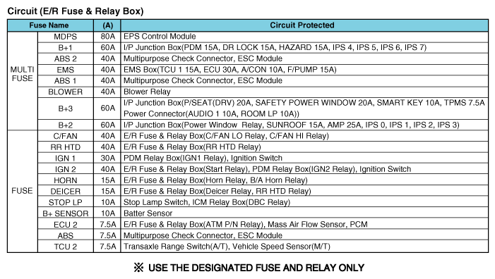 TUCSON(LM) >2012 > G 2.0 DOHC > Body Electrical System > Fuses And Relays > Relay Box (Engine Compartment)>Components and Components Location
