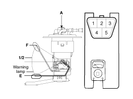 Turn the ignition switch to the ON, and then check that the bulb lights up and the fuel gauge needle moves to full.