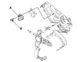 Disconnect the 5P connector of the SMARTRA unit and then remove the SMARTRA unit (A) after loosening a shear bolt (B).