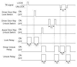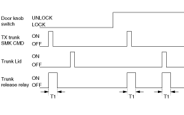 If ALL DOOR UNLOCK and TRUNK LID is OFF → ON, Trunk Release Relay is ON during T1.(SMK option)