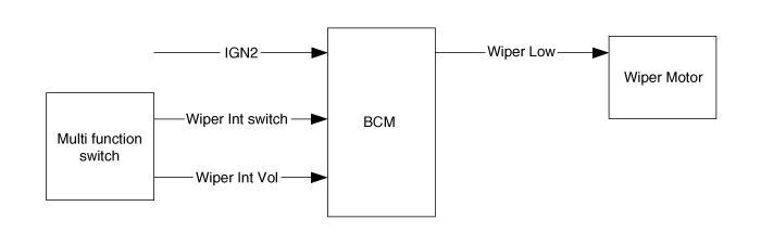If IGN2 switch=`N and Rear wiper INT switch=ON is, Rear wiper relay outputs ON.At this time, If IGN2 switch=OFF or Rear wiper INT switch=OFF, Rear wiper relay outputs OFF.