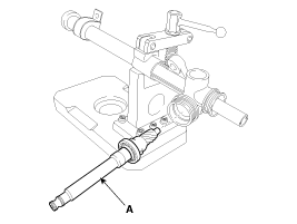 Loosen the bolt (A) and then disconnect the universal joint assembly from the pinion of the steering gear box.