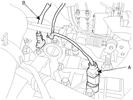 Remove the back up lamp switch(A) and Vehicle speed sensor(B).
