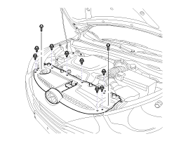Loosen the radiator upper cover mounting bolts and clips.