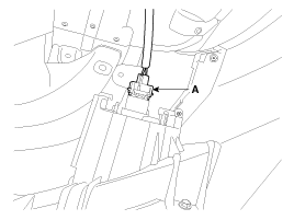 Push the lock pin, disconnect the fog lamp connector (A).