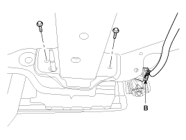 Push the lock pin, disconnect the rear bumper main connector (B).